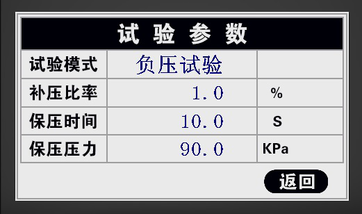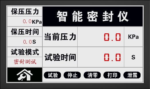 3: 進入試驗界面,界面上顯示的“當前壓力”為當前的試驗壓力;“試驗時間”為試驗過程中的保壓時間;“保壓壓力”為設(shè)置的壓力,“保壓時間”為設(shè)置的保壓時間。當真空室內(nèi)的壓力被抽到設(shè)定的保壓壓力時,開始保壓,并計保壓時間;“試驗?zāi)J?rdquo;是密封測試。